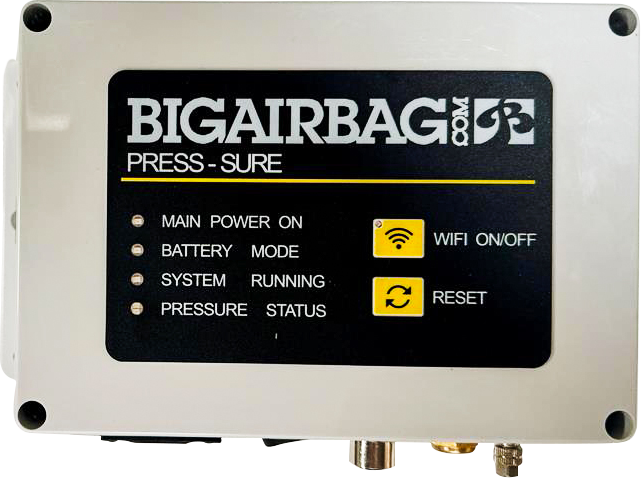 The BigAirBag Pressure Alarm is a crucial component for safety monitoring airbags, designed not only to ensure the optimal functioning of airbags but also to guarantee compliance with CE standards. The BigAirBag Pressure Alarm helps a trampoline park with maintaining the recommended airbag pressure levels and visually and audibly alarming users to warn them from jumping in the event of a pressure failure.